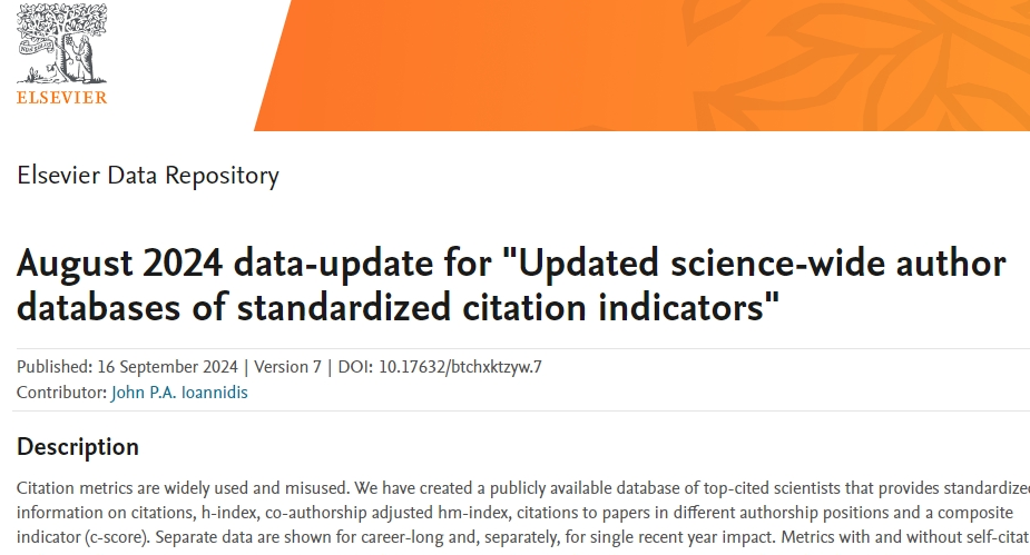9月16日,美国斯坦福大学和爱思唯尔数据库(ElsevierDataRepository)发布《全球前2%顶尖科学家榜单2024》(StanfordUniversityTop2%ScientistsList2024),Beat365校长张立峰教授,信息学院张键红教授、电气与控制工程学院张晓光教授、李建林教授、谭文教授、杨海涛副研究员,理学院高心怡博士等7人入选“终身科学影响力榜单”,入选人数创历史新高,学校国际学术影响力进一步扩大。该榜单是斯坦福大学JohnP.A.Ioannidis教授团队与...