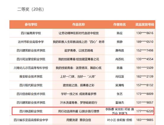 据悉,“我的技能青春/我的职教人生”征文活动是2024年成渝地区双城经济圈职业教育活动周的子活动。活动自启动以来,便受到了全省职业院校师生和社会人士的广泛关注和踊跃参与。经初审、复审、专家评审,推选出一等奖10篇、二等奖20篇、三等奖30篇、优秀奖30篇。