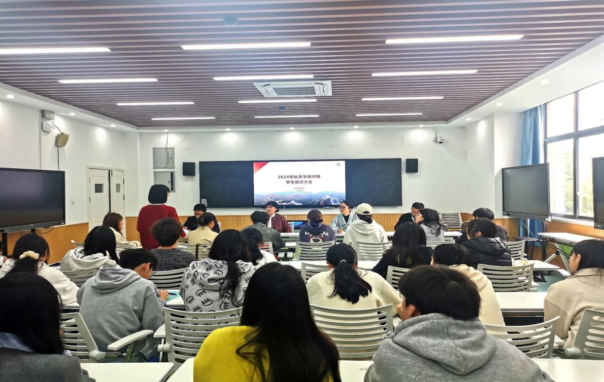 为充分了解学院教师教学情况及学生思想动态、学习生活情况,持续深入开展思想政治教育,培育优良教风学风,提高教育教学质量。11月7日中午,经济管理学院在2302教室组织召开“2024年秋季学期中期学生座谈大会”。学院院长文容、副院长李晓出席会议,各班级学生代表共计40余人参加了座谈会。
