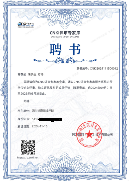 近日,中国知网(科研评价事业部)再次邀请我院经济管理学院朱多生副教授作为评审专家入驻CNKI评审专家库系统。CNKI评审专家库系统旨在向各高校、科研院所、企事业单位等提供高效、便捷、智能化的评审服务,服务范围包括学位论文评审、优秀学位论文评审、优秀会议论文评审、科研成果评审及人事评审等相关内容。