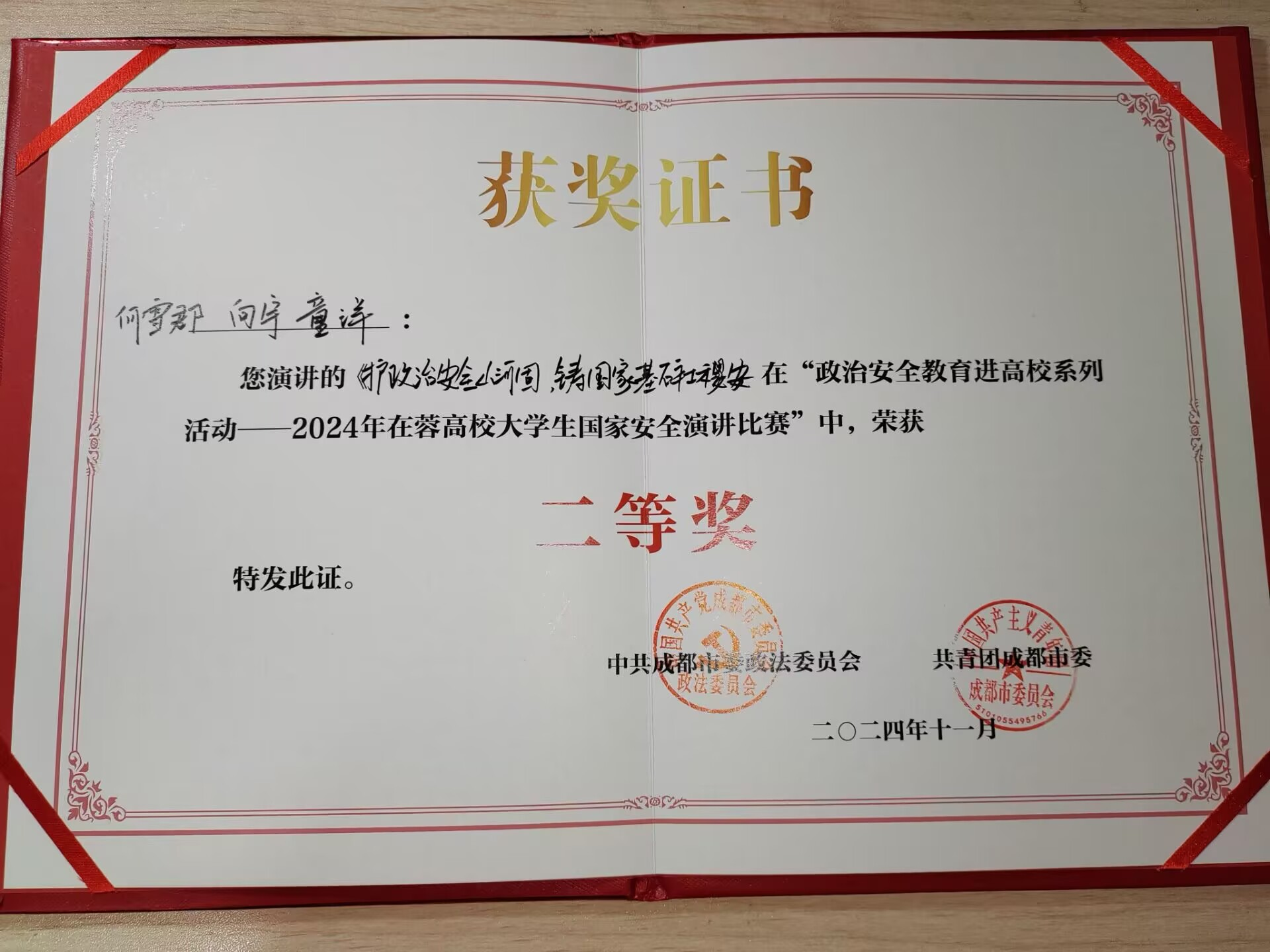近日,由中共成都市委政法委员会、共青团成都市委联合主办的“2024 年在蓉高校国家安全演讲比赛”落下帷幕,来自beat365经济管理学院的参赛选手何雪郡同学凭借出色表现荣获二等奖,刷新了beat365学生在该项比赛中的最好成绩。本次比赛以“守护国家安全・共筑美好未来”为主题,旨在深入学习宣传贯彻总体国家安全观,增强在蓉高校学生国家安全意识和素养。