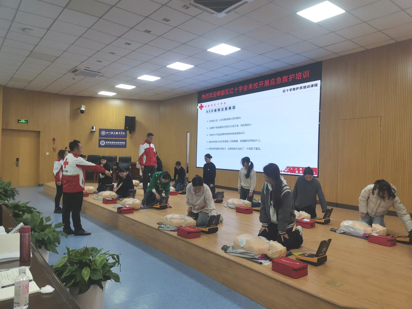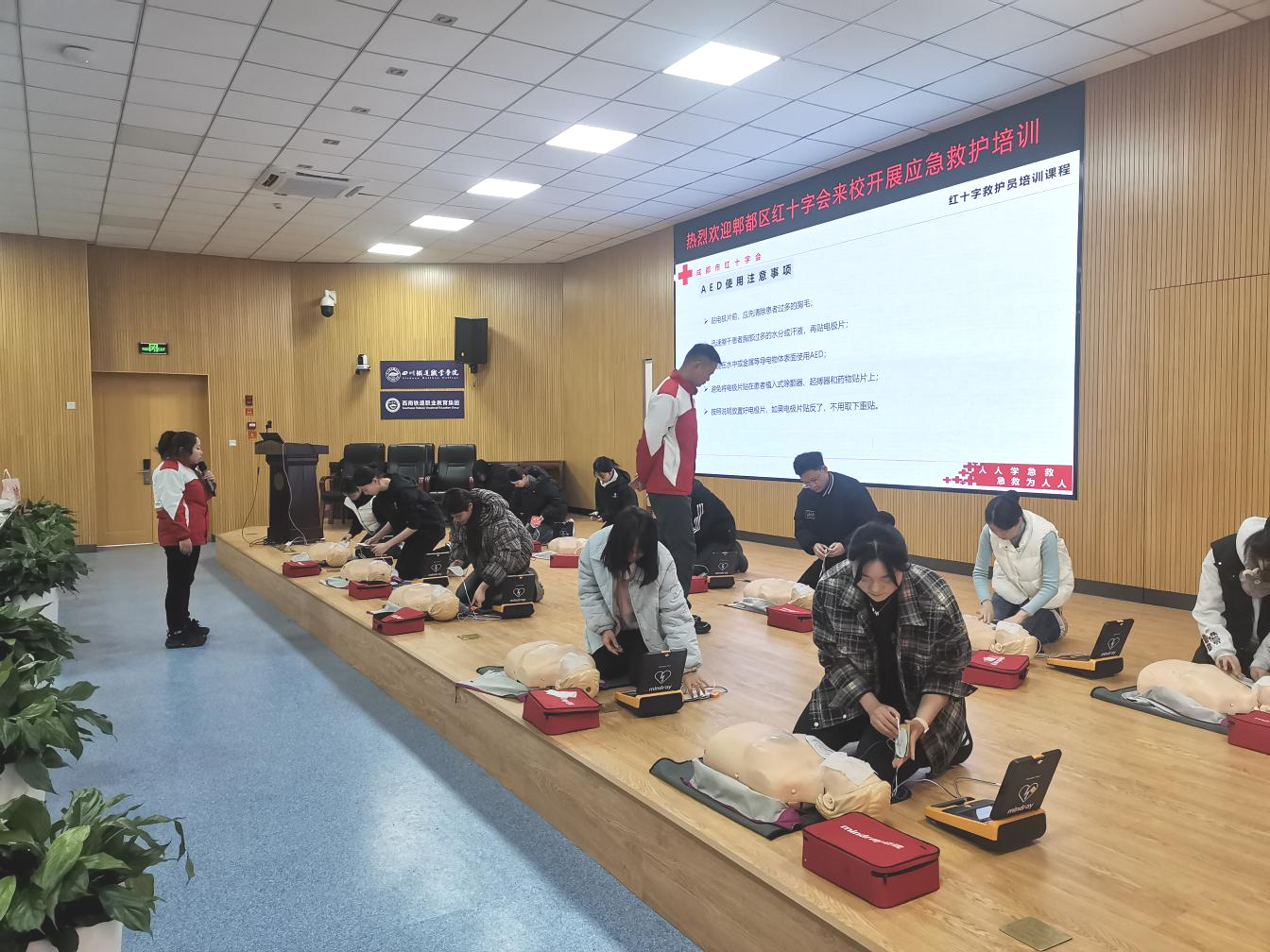 培训期间,来自成都市红十字会、郫都区红十字会的资深讲师冷从明、吴明伟、康凤娟亲临现场,为同学们带来了专业且实用的专题授课。培训课程体系完善,理论知识层面,深入讲解了红十字运动的起源、救护概论,细致剖析了心肺复苏、常见急诊、意外伤害以及突发事件的应对策略。实操环节更是精彩纷呈,学员们在老师的指导下,围绕心肺复苏、创伤止血与包扎等核心技能展开实操演练,在实践中不断精进救护本领。经过两天高强度的学习,65 名学员凭借扎实的理论功底和娴熟的操作技能,顺利通过考核,成功获得红十字救护员证。