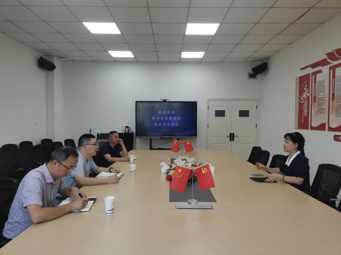 6月13日,郫都区安德街道综合便民服务中心主任郭安宇带队来到经济管理学院开展走访调研。双方围绕校地合作新模式、乡村振兴新路径等议题展开深入探讨,学院党总支书记、院长文容热情接待并参与座谈。