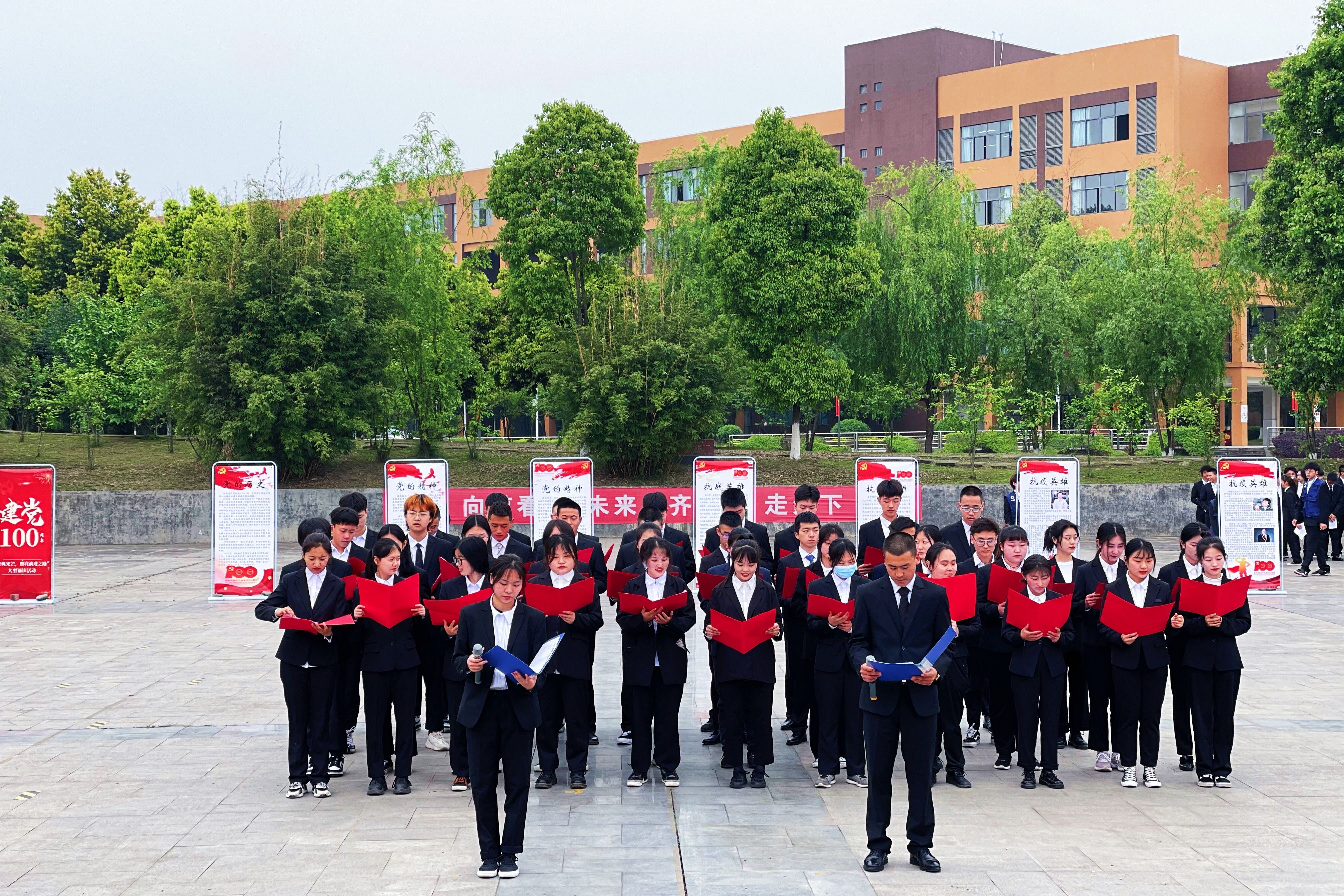 为隆重纪念中国共产党诞辰100周年,2021年4月12日的下午四点半,管理系团总支学生会在下沉音乐广场隆重举行“经典光芒,照亮前进之路”主题诵读比赛。本次活动的主持人为刘宇鹏和肖玉滢,本次到场的评委和嘉宾分别是:管理系党总支书记郭小林老师、管理系辅导员钟欣老师、马琴老师、唐准老师、管理系干事李槐老师。