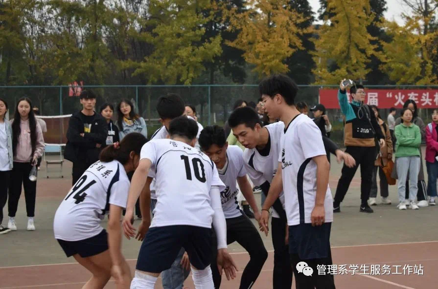 赛场上,队员们本着“友谊第一、比赛第二”的精神,奋力拼搏。在16:30的时候第一局比赛结束,电信工程系以25:20领先管理系。第二局交战双方你攻我守,甚至频繁出现小分打到平分的情况,比赛的精彩程度可见一斑。时间定格在16:51管理系拿下赛点追平比分,变为1:1。队员们奋力拼搏,团结协作,相互鼓励,精彩的赛事让掌声欢呼声不断。在比赛中,各个队伍均展现出高度的团结协作精神,动员们各个精神抖擞,尤其是女队员们展现出我系女生的巾帼气概!为同学们带来了别具一格的体验。