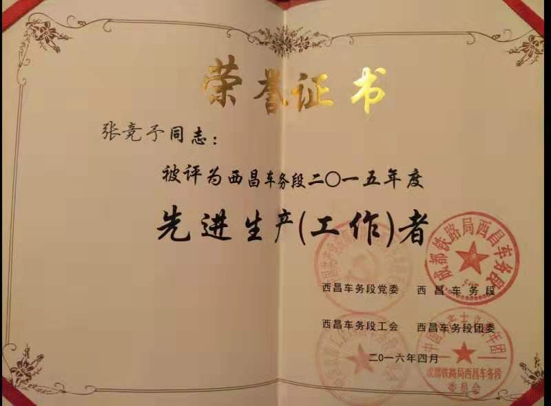 张竞予,女,2014年毕业于我院铁道交通运营管理专业,现就职于成都铁路局西昌车务段。由于工作认真且业务能力强,张竞予同学陆续获得了西昌车务段二〇一五年先进工作者、西昌车务段2016年“弘扬成昆精神,传承光荣使命”演讲比赛第一名、成都铁路局“青年岗位能手”、成都铁路局“美丽铁路”旅行专列设计大赛金奖、2017年西昌车务段优秀团干、成都局集团公司“中国梦.铁路情.劳动美”演讲比赛成都片区第一名等荣誉称号。“踏实一些,不要着急,你想要的时间都会给你。”也成为了张竞予的人生格言。