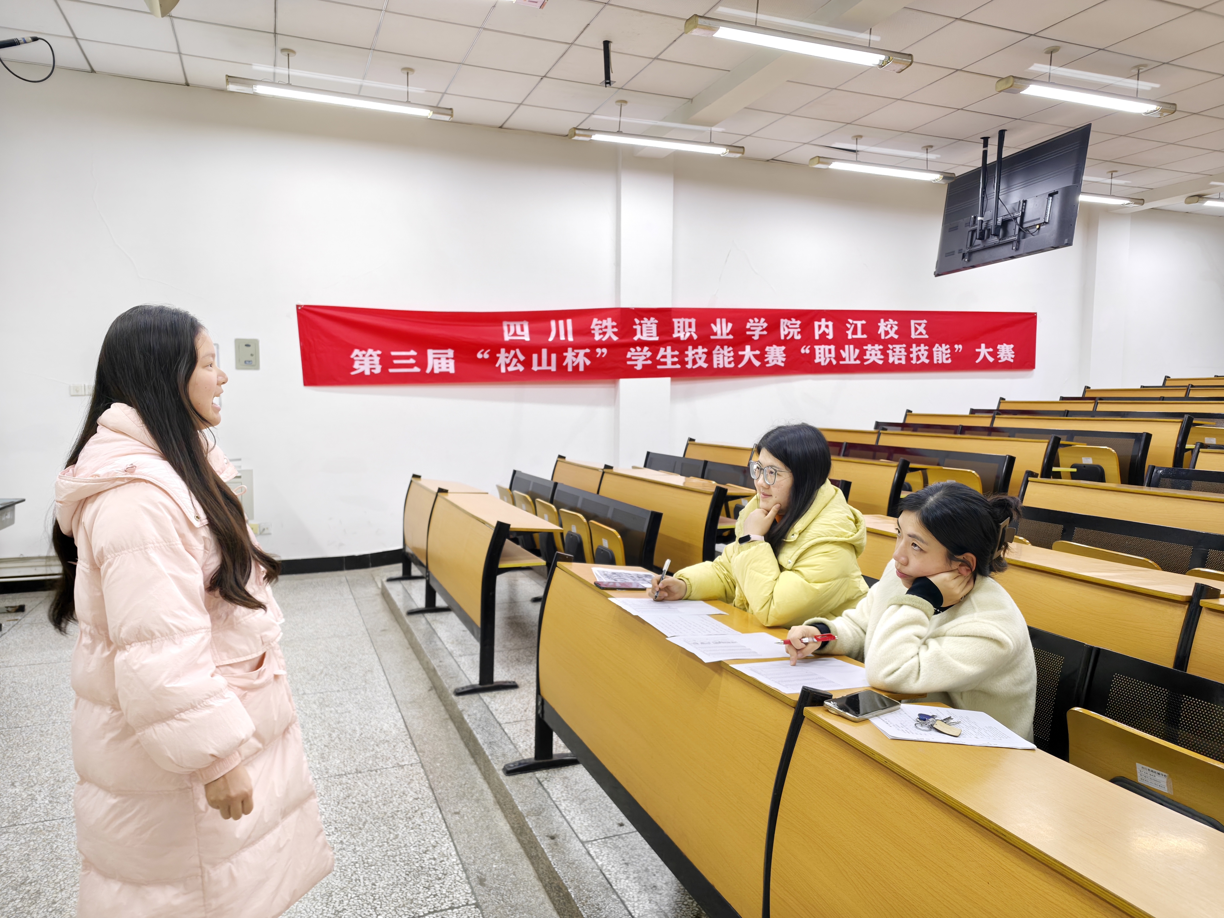 为提升学生职业英语应用能力,激发英语学习热情,11月17日至24日,内江校区隆重举办2025年“职业英语”技能大赛。该项比赛面向校区全体学生开放,历经初赛选拔、复赛角逐,11月24日晚在多媒体五教室圆满落幕。最终,共12名同学在本赛项中取得佳绩。