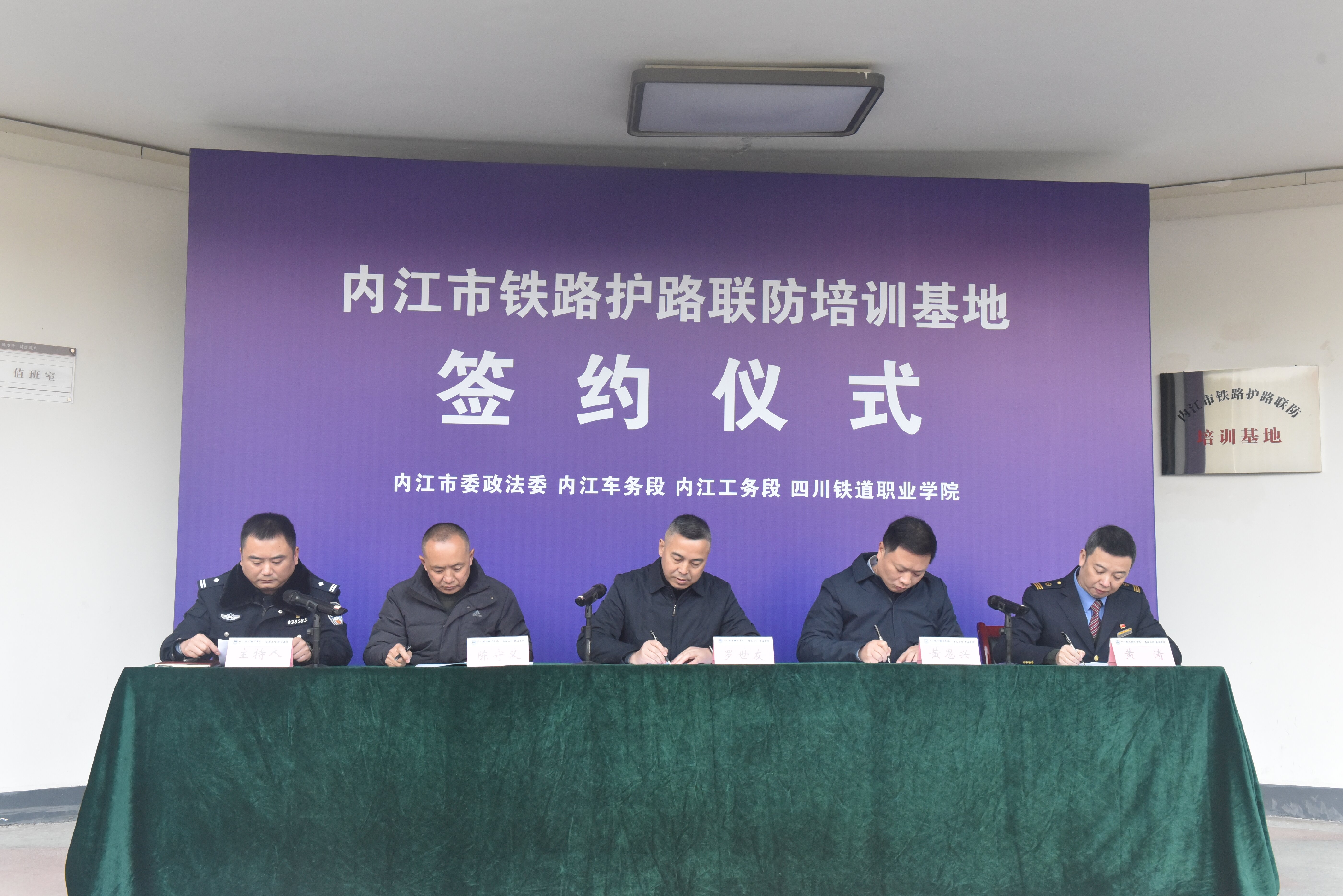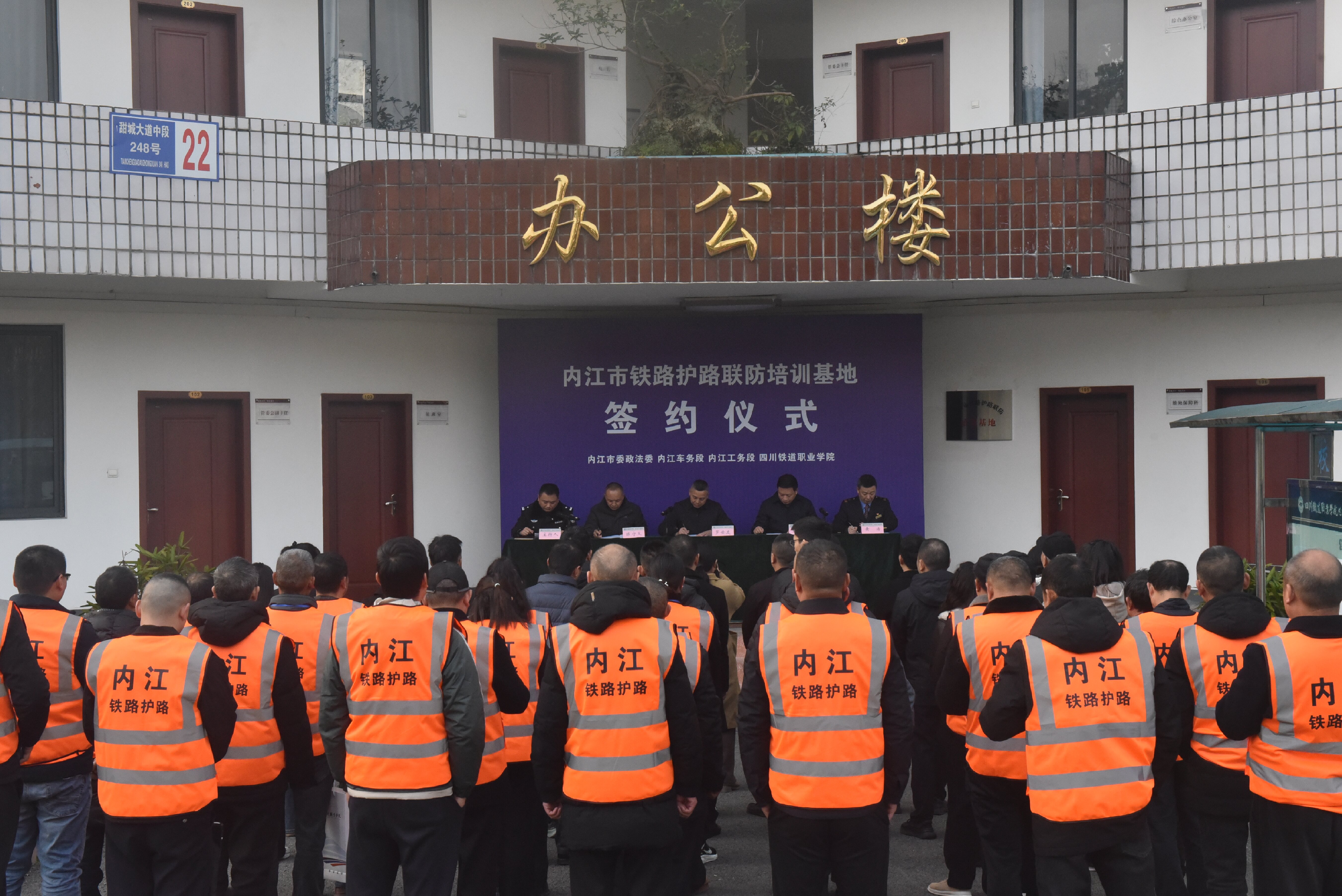 市铁护办主任,内江市教育体育局、交通运输局、内江车务段、内江工务段、成都高铁工务段、宜宾工电段、beat365在线唯一官网相关负责同志,各县(市、区)铁护组组长、铁护办主任,参培护路队员等参加签约仪式。