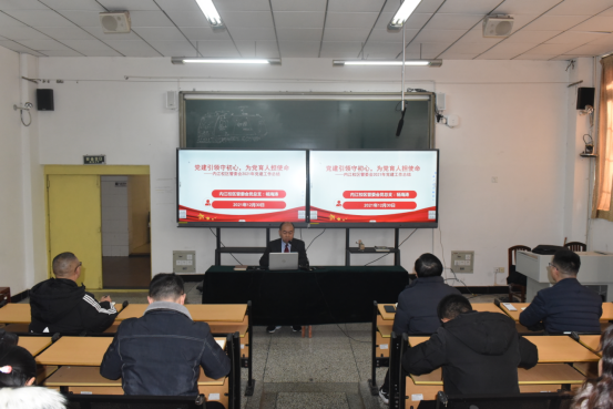 为深入学习贯彻党的十九届六中全会精神和省委第十一届十次全会精神,总结内江校区过去一年党建工作经验,巩固党史学习教育成果,安排部署2022年党建工作任务,12月30日,内江校区管委会党总支在多媒体四室召开了2021年党建工作总结会。学校党委委员、副校长易刚出席会议,内江校区全体党员、预备党员、入党积极分子参加了会议。会议由内江校区党总支书记杨海涛主持。