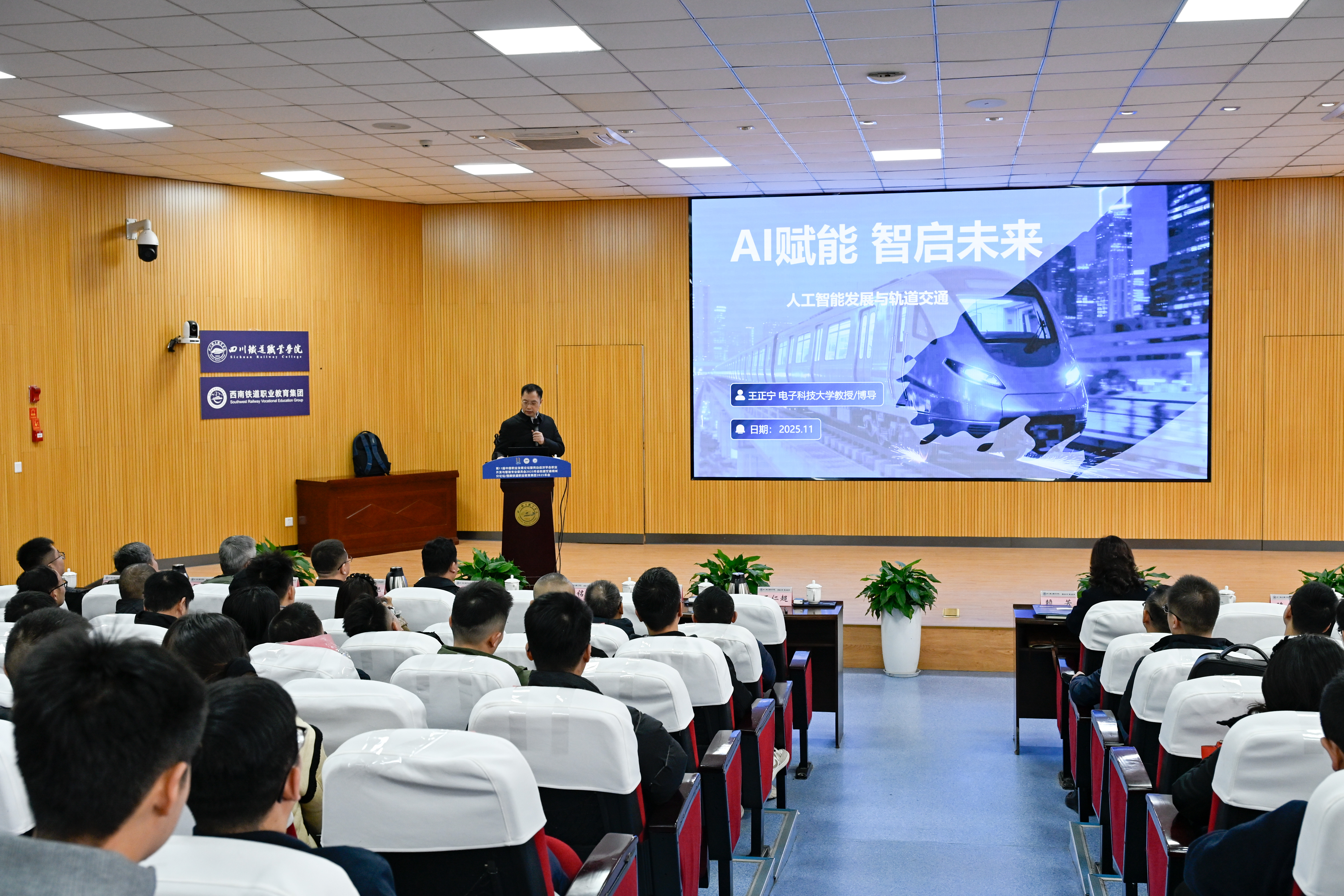 主题报告环节,电子科技大学王正宁教授解读AI在智能调度、安全预警、运维检测等场景的应用前景;西南交通大学何庆教授分享AI在铁道工程智能设计与教学中的创新实践;成都工业学院沈益民教授结合案例分析数据驱动下AI在能耗优化、设备诊断等领域的应用趋势与挑战。