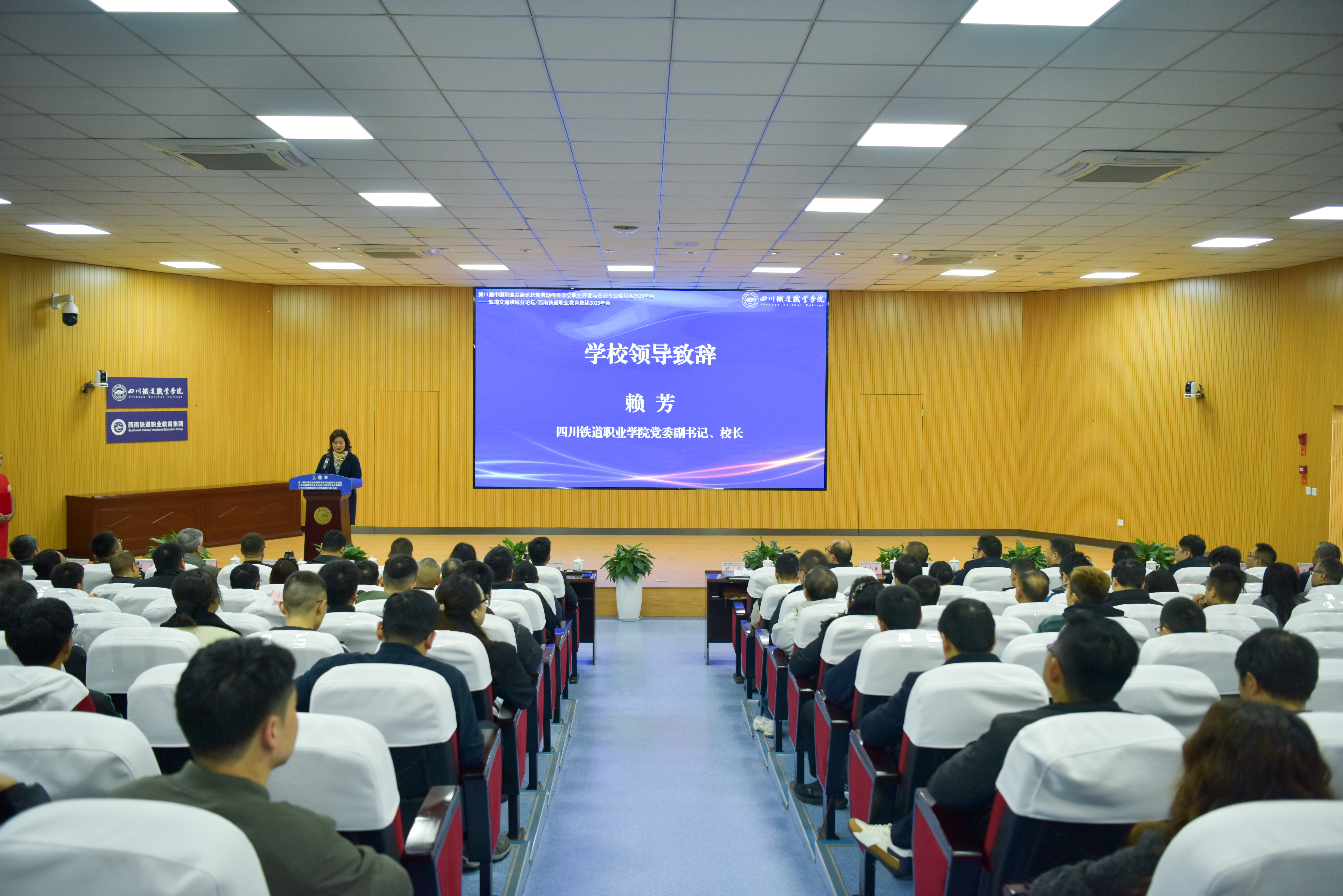 校长赖芳在致辞中指出,人工智能正深刻重塑轨道交通行业生态,对人才素养提出新要求。她强调,推动职业教育与产业同频共振,是实现高质量发展的关键。此次论坛与机构揭牌,既是学术交流的盛会,更是产教融合、协同创新的重要契机。