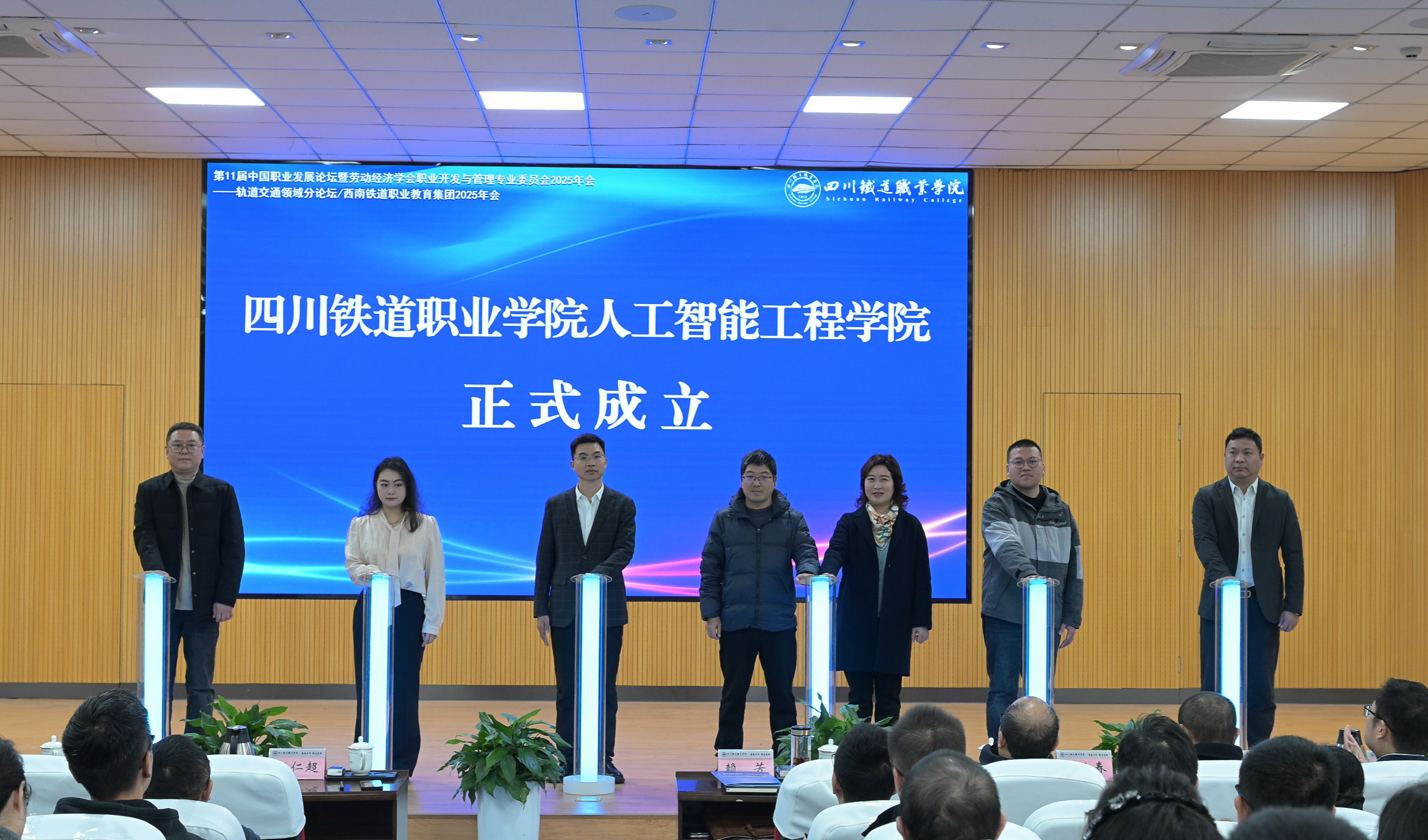 2025年11月23日,第11届中国职业发展论坛轨道交通分论坛暨西南铁道职业教育集团2025年会在beat365在线唯一官网成功举办。会上,举行人工智能工程学院成立仪式及四川省心理学会职业心理与生涯教育专委会揭牌仪式。来自人工智能、轨道交通领域的专家学者、企业代表及职教集团成员单位等共100余家单位参会。论坛由副校长王浩澂、黄恩兴主持。