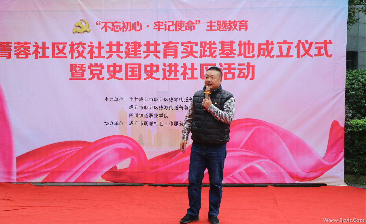 我院与菁蓉社区校社共建共育实践基地举行了成立仪式。德源街道党工委副书记、纪工委书记罗曦、德源街道菁蓉社区党委副书记曹庆和思政部主任朱红分别致辞。朱红希望同学们珍惜菁蓉社区提供的锻炼能力、服务社会的机会,走出校园、走进社区,虚心向社区领导和居民请教,把马克思主义理论和国情、社情结合起来,把社会主义核心价值观和生动活泼的社会实践结合起来,用自己的真才实学为群众服务,为社区建设添砖加瓦,奉献社会,报效国家。