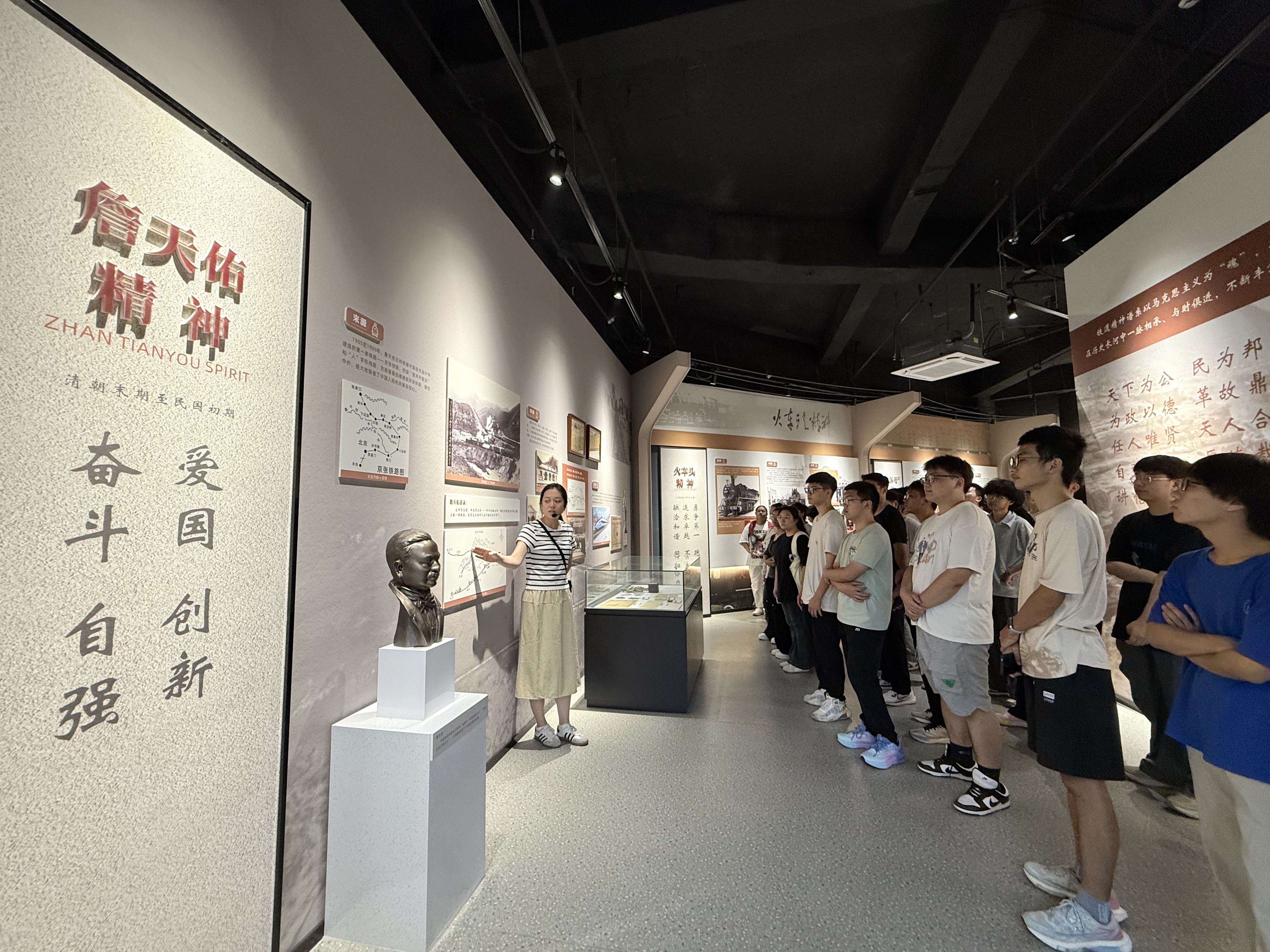 在铁路红色文化精神博物馆,同学们参观学习了詹天佑精神、“毛泽东号”精神、铁道兵精神、成昆精神、青藏铁路精神和中国高铁精神等具有全国影响力的铁道精神。詹天佑先生的自强不息,“二七”大罢工中铁路工人的英勇抗争,成昆铁路建设者创造世界奇迹的奉献情怀,中国高铁的突出成就,让同学们对中国铁路从蒸汽时代到高铁时代的发展历程有了初步认识和了解,激发了同学们的民族自信心。