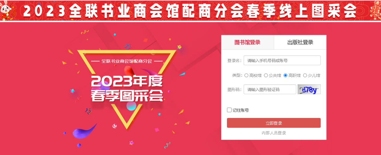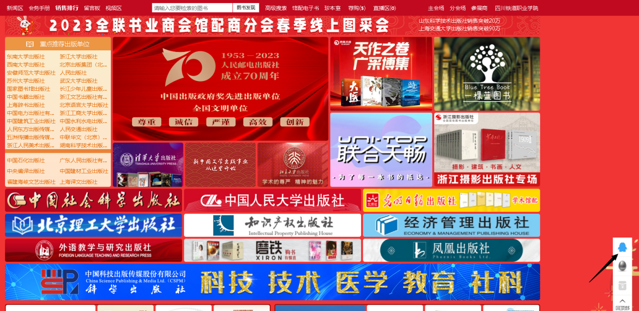 各位师生/读者: 大家好! 2023全联书业商会馆配商分会春季线上图采会如约而至。本届图书采会将展示数百家出版单位全品种图书、数十万种新书资源应有尽有,一键登录为你营造身临其境的体验感。更有多场出版社直播活动等待大家参与。 现将图采会相关活动指南呈现如下: 一、图采会时间:2023年3月14日-3月20日 图采会网址:https://d.cxstar.com 登录名:SCTDR1107 登录:点击右上角【登录】