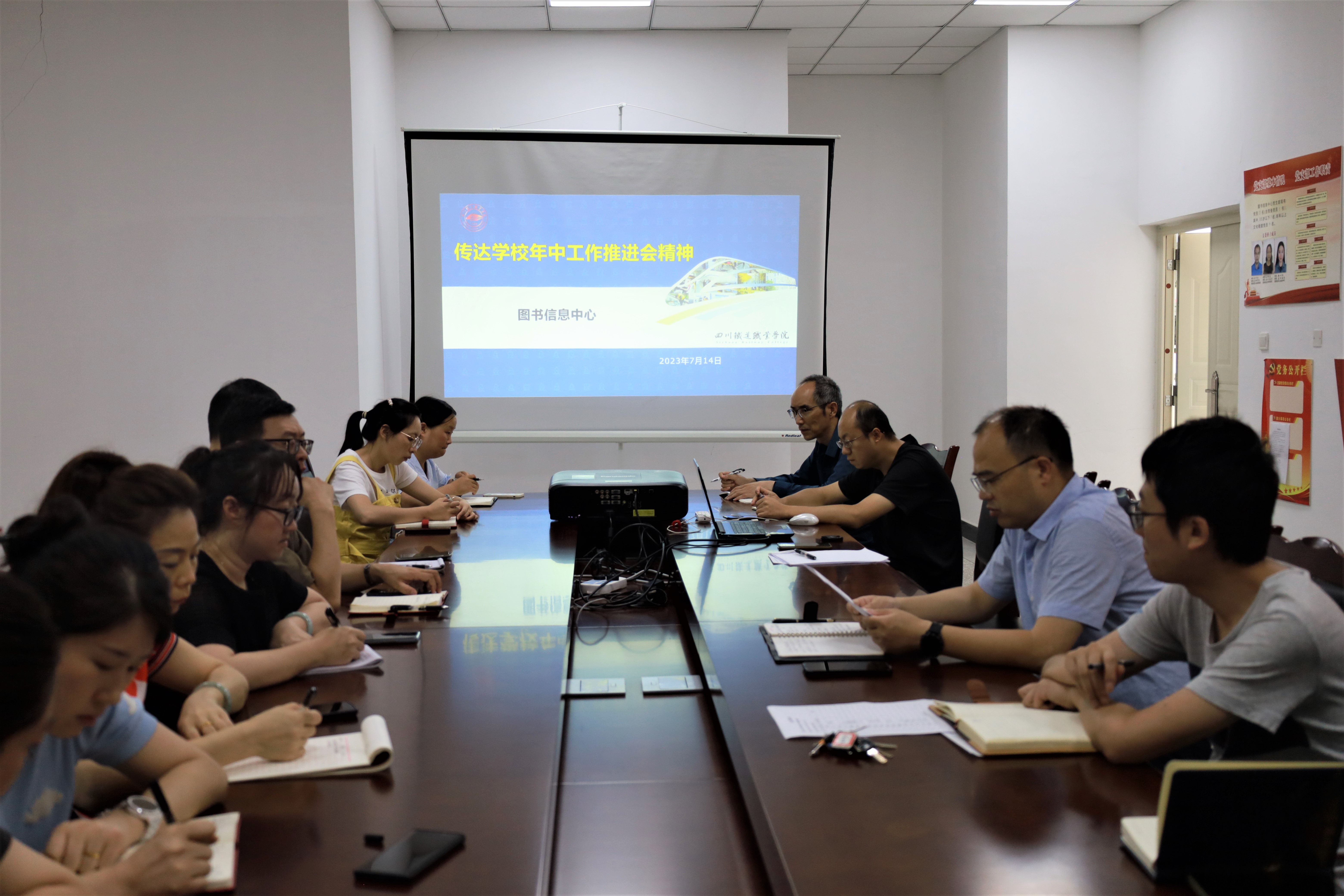 7月14日下午,图书信息中心全体教职工在图书馆三楼会议室召开会议,传达学习学校2023年中工作推进会会议精神,何中华主持会议。