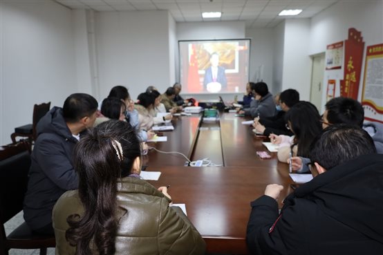 首先,何书记带领大家观看了《国家主席习近平发表二〇二二年新年贺词》视频,并对讲话内容进行了深入细致的讲解,何书记强调,要以习近平主席新年贺词为指引,汲取理想信念之力,感悟学生思想价值引领重任在肩,汲取为民情怀之力,感悟围绕、关照、服务学生重任在肩,汲取自我革命之力,感悟改进创新工作开展重任在肩。踔厉奋发、笃行不怠,坚定信念、实干创新,为学校发展贡献自己的力量。