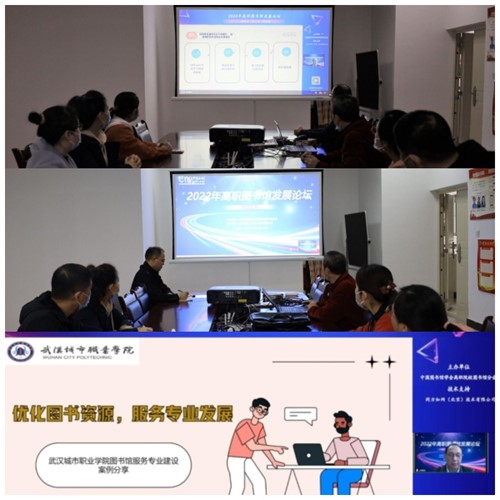 为贯彻落实《关于推动现代化职业教育高质量发展的意见》,聚焦类型教育对职业院校图书馆“专业服务”的新要求,助推职业院校图书馆赋能“双高计划”与“职教本科”建设,由中国图书馆学会高职院校图书馆分会主办的线上“中国高职图书馆发展论坛”,于10月27日、28日举办。图书信息中心何中华及图书服务部全体馆员在三楼会议室参会学习。