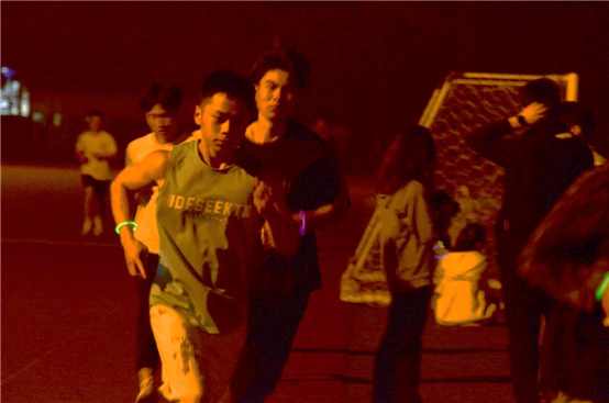 随着主持人的一声令下,来自各个学院的师生们共同开跑,沿着操场肆意挥洒汗水,在激昂澎湃的背景音乐与此起彼伏的加油呐喊声中奋力奔跑。大家佩戴的荧光手环色彩斑斓、律动闪耀,点亮了夜色,也照亮了青春。