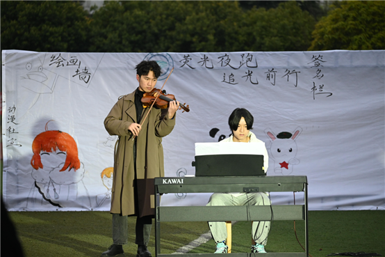在“荧光演唱会”中,青年志愿者协会文体部、大学生艺术团以及舞蹈社的同学们纷纷展示才艺,精彩纷呈的表演为夜跑活动营造了更加浓厚的氛围,也为夜跑活动的开展拉开了帷幕。