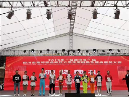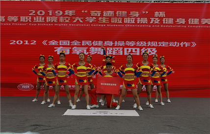 2019年11月16日,四川省高等职业院校大学生啦啦操及健身健美大赛在四川国际标榜职业学院拉开帷幕,来自全省25所高职院校代表队盛装参赛。我院由交通工程系、电气系、电信系、机车系、管理系、会金系的18名同学组成的啦啦操队代表队以健美操规定套路有氧舞蹈四级参赛,最终以团体总分8.5分的成绩获得二等奖。