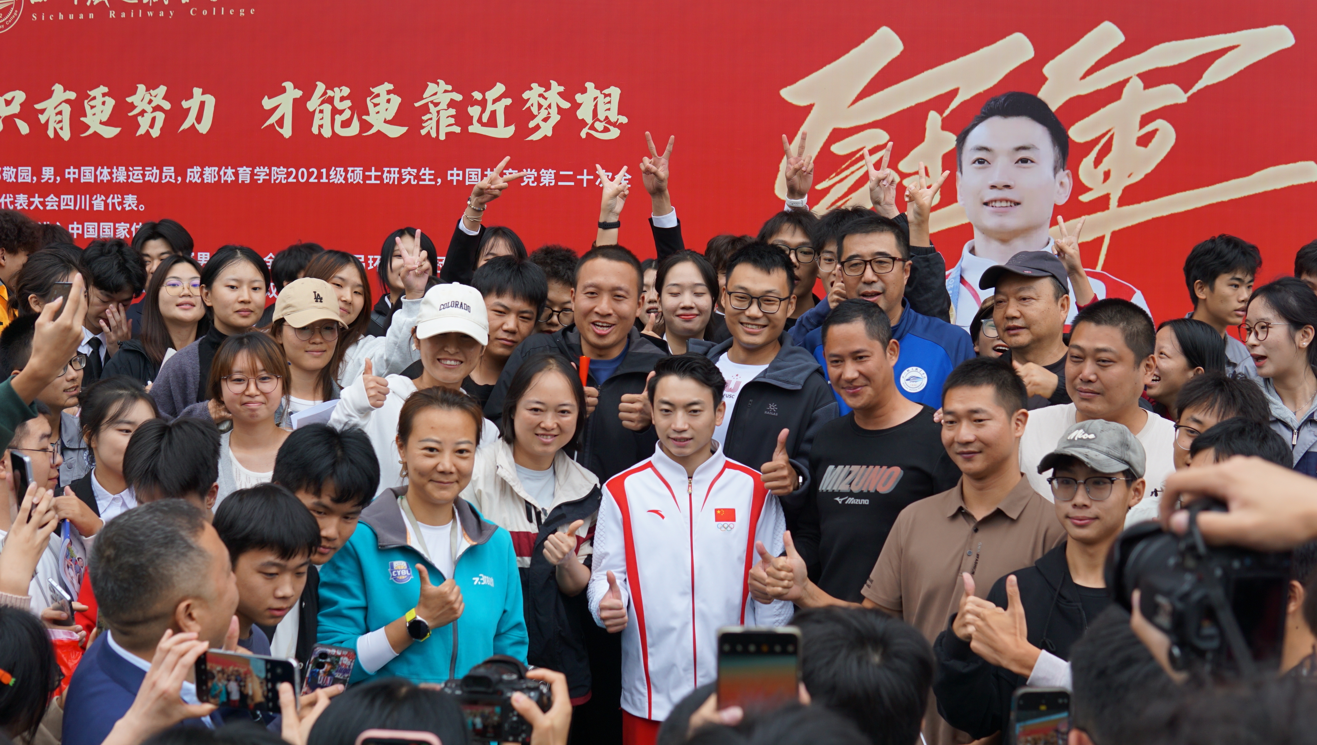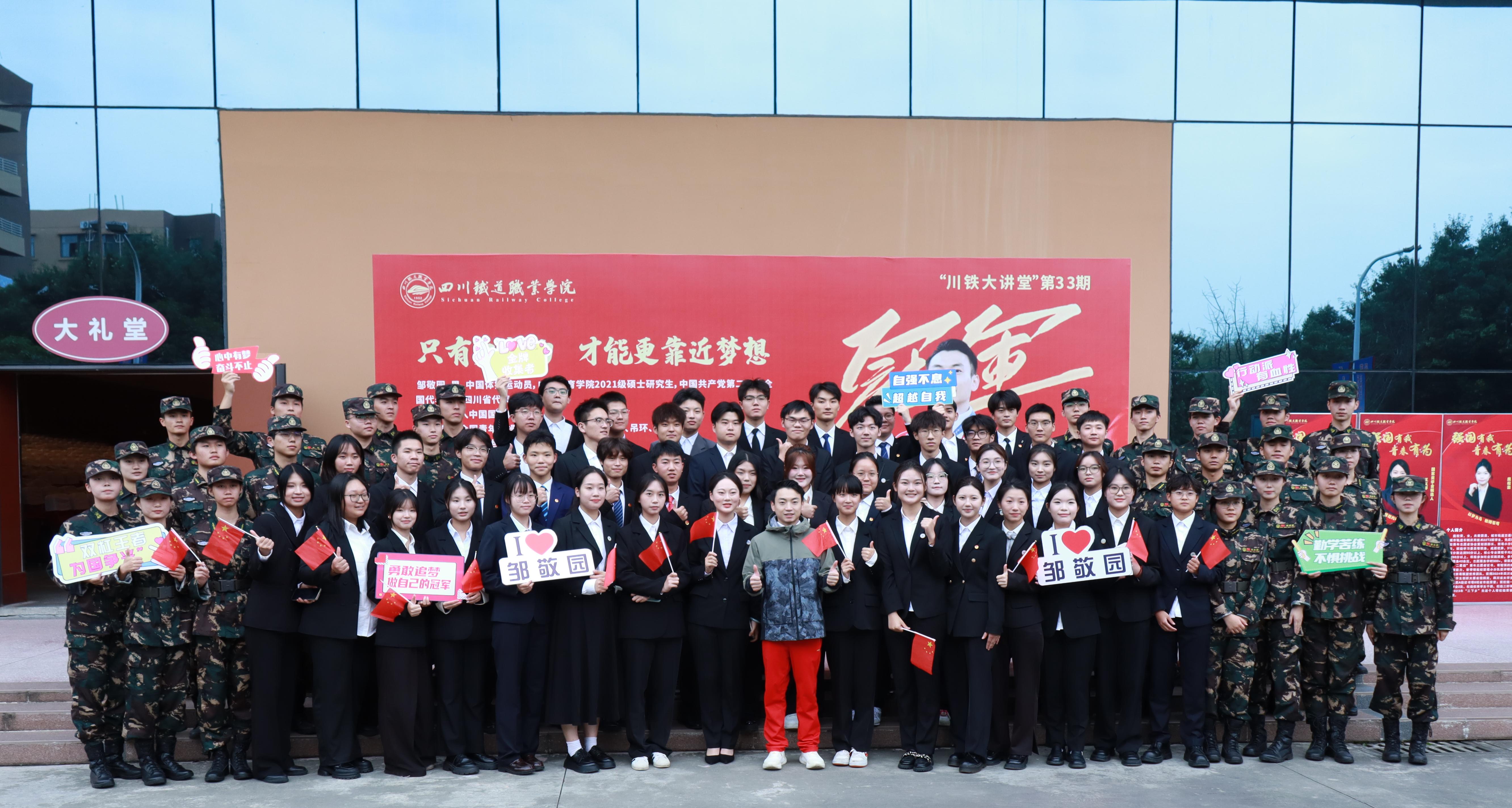 邹敬园在互动环节回答了师生们关心的问题。面对紧张情绪,他用清晰的目标和扎实的训练去克服;面对挫折低谷,他说热爱可抵万难,厚积方可薄发;面对伤病压力,他依靠团队、依赖队友、依托祖国,用意志和毅力扛起为国争光的责任。他激励师生们在实现梦想的道路上,追求极致,拼搏到底,绽放出最耀眼的光芒。