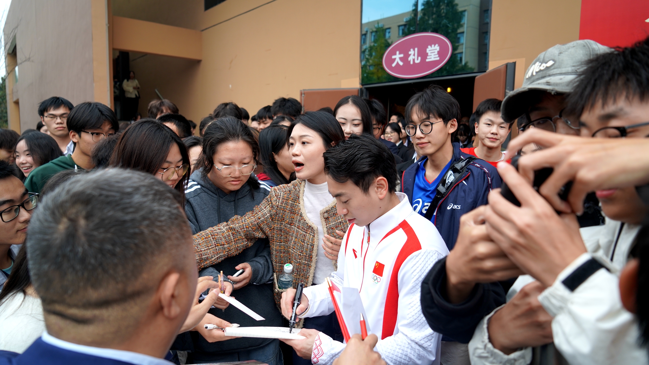 奥运冠军的到来,激起了师生空前的热情,会场响起了经久不息的掌声。大家抢着签名合影,与冠军近距离交流互动。