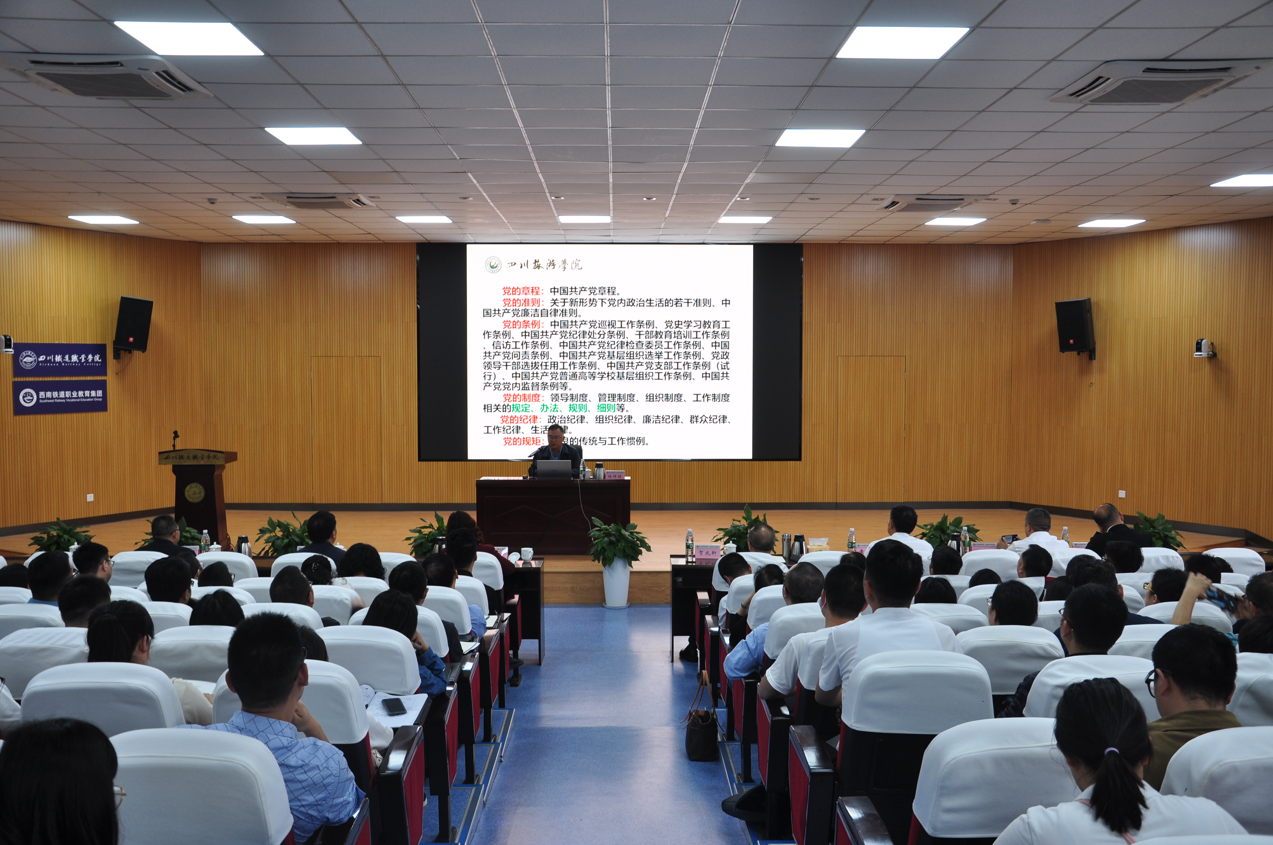 4月24日下午,学校邀请四川旅游学院原党委副书记、纪委书记、研究员杨祥禄到校开展题为《学习贯彻<中国共产党纪律处分条例> 全面加强党的纪律建设》专题辅导讲座。杨祥禄对新修订的《条例》进行系统全面深入细致的讲解,为全校党员干部上了一堂生动深刻的党纪学习教育课,为学校深入学习贯彻《条例》提供了很好的指导。