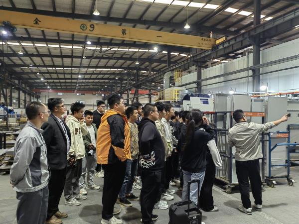 翁长伟带领师生们参观了公司的生产现场,师生们亲眼看到了机器设备的操作细节和生产加工工艺,同时也了解了公司的用人需求和最新技术。参观期间,同学们纷纷表示,本次活动使他们对企业实力、招聘岗位、薪资待遇等有了新的直观认识,进一步感受到了企业的吸引力,对未来在公司就业充满期待。