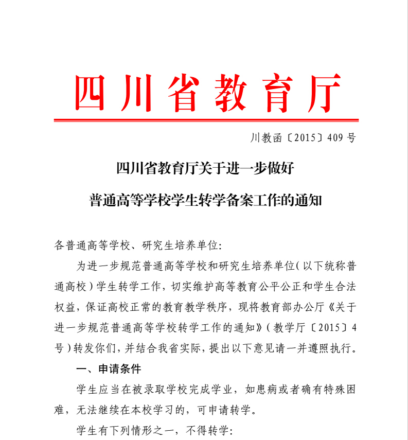 四川省教育厅关于进一步做好普通高等学校学生转学备案工作的通知