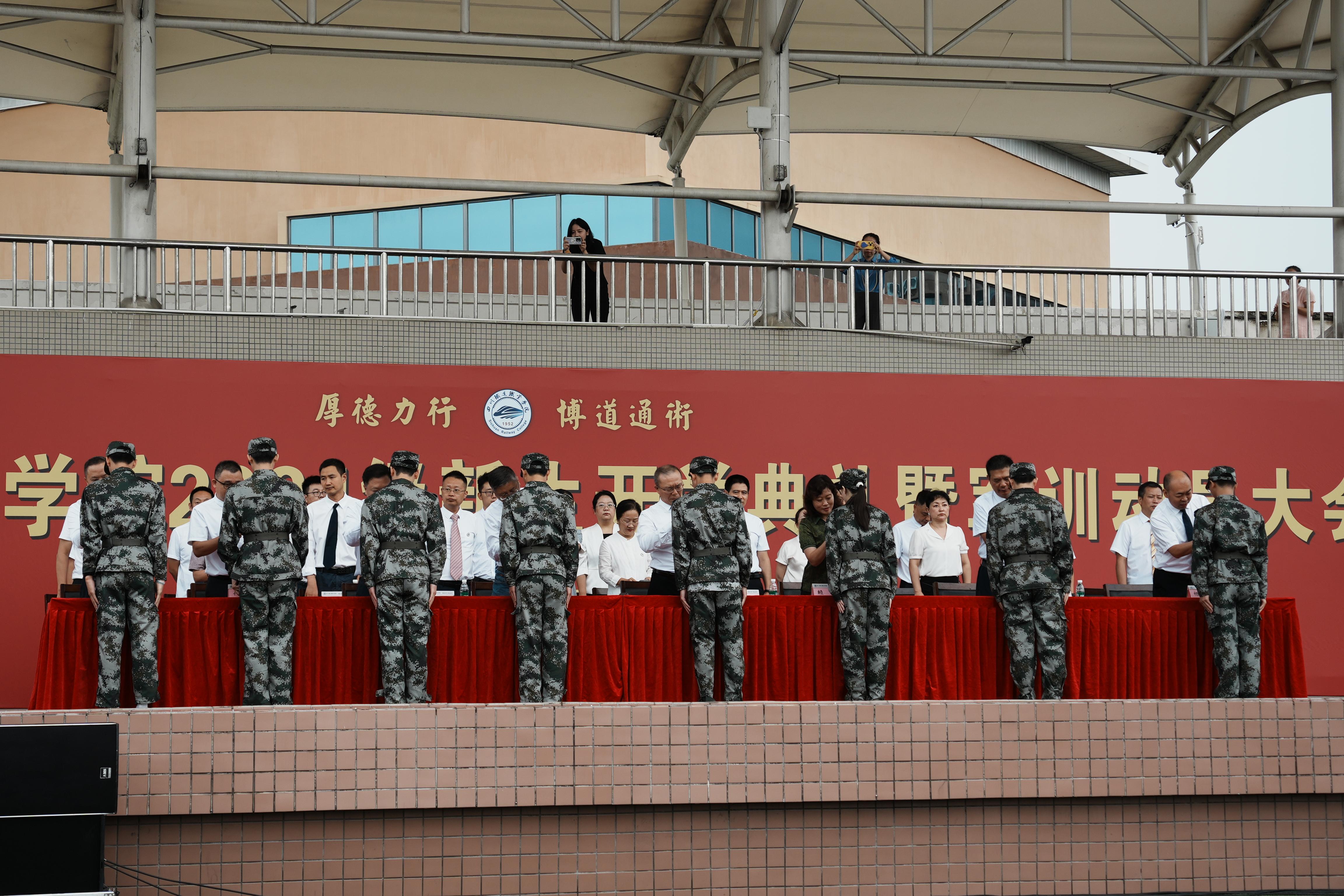 老生和新生代表同台献词,并带领全体新生庄严宣誓。他们掷地有声的献词,鼓舞着新同学们接续奋斗,奋楫笃行,再创佳绩!“立报国强国大志向,练就过硬本领,传承川铁精神,勇担复兴重任,……”铿锵有力的誓言喊出接续川铁荣光,奋楫启航做挺膺担当奋斗者的青春强音。