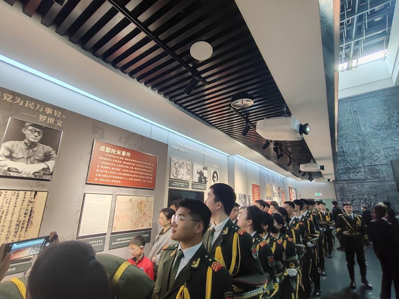 祭扫仪式结束,队员们参观了烈士纪念馆,学生教官现场讲述英烈故事,队员们驻足凝望,心中激荡着“吾辈当自强”的使命感。