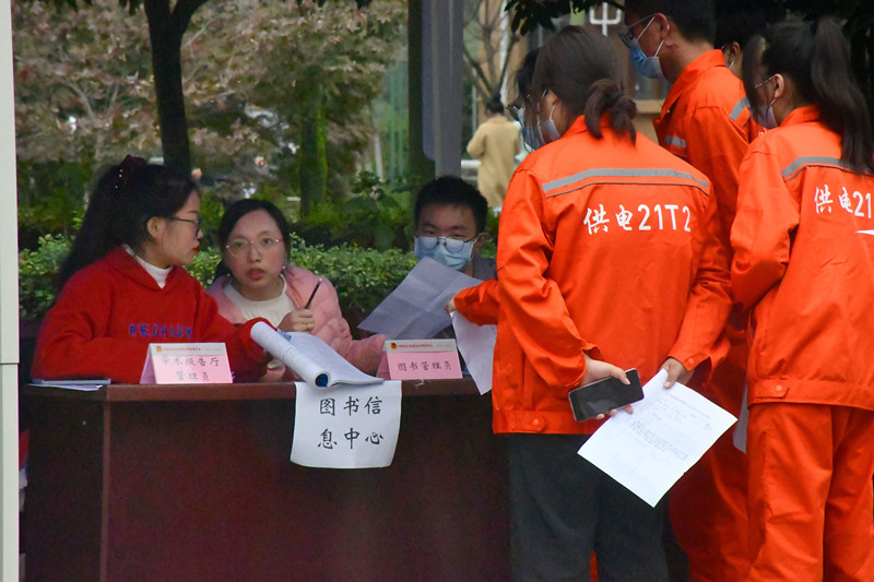 招聘会现场,同学们根据个人兴趣及自身实际情况前往各招聘点应聘,主动向各用工部门老师咨询,了解用工内容,老师们认真翻阅学生的岗位申请表,并详细询问学生具体情况,真正实现“双向选择、竞争上岗”。招聘会后,各用工部门将按照要求组织新聘任的勤工助学学生进行岗前培训,培训合格后正式上岗工作。