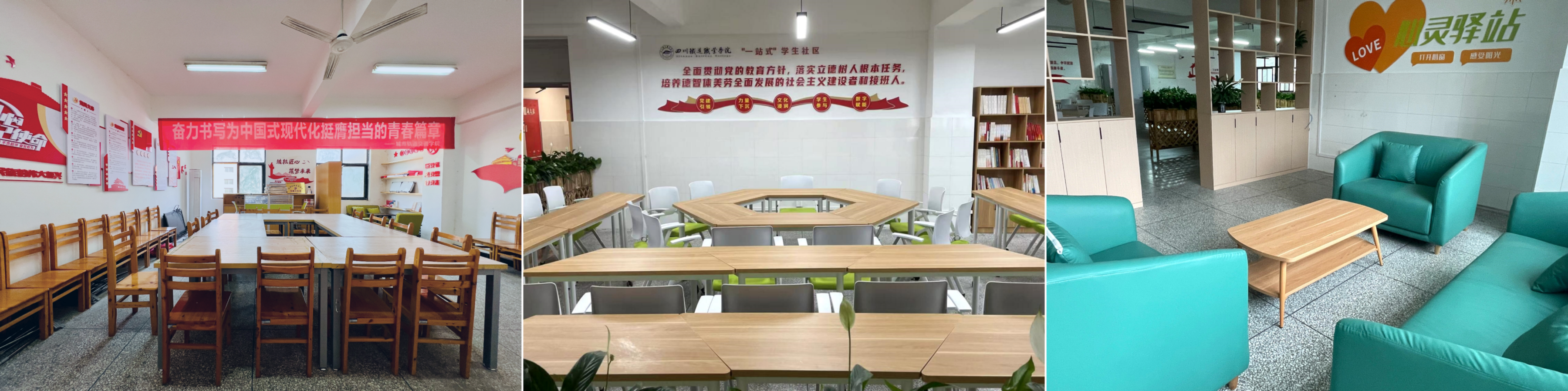 成长支持空间深度融入党建引领、思政教育、师生互动和心理帮扶,设有党团工作站、交流互动区、情绪宣泄室等,提供师生“面对面”辅导服务,打造“零距离”沟通平台。