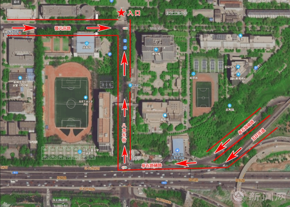 1、高德地图导航、百度地图导航:Beat365唯一官方网站南门(石景山区晋元庄路与八角东街交叉口北20米)。进车位置如下图: