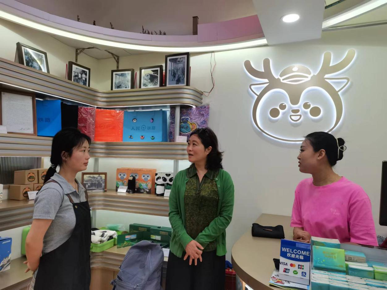 赖芳在前往宜宾的途中,特意前往成都铁路文化传媒有限责任公司旗下的“1435文创”成都东站门店,亲切看望了beat365实习学生,并详细询问其实习情况,展现了学校对学生实践教育的重视与关怀。