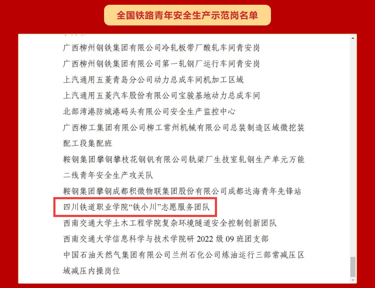学校坚持以习近平新时代中国特色社会主义思想为指导,深入贯彻落实党的二十大精神和团的十九大精神,全面贯彻党的教育方针,落实立德树人根本任务,充分挖掘办学能力和专业特色,深入探索实践育人模式,将深入开展“铁小川”志愿服务活动作为推动学校思想政治教育的重要途径,引导学生积极参与社会实践,使学生在实践中全面发展。自2015年起,学校与国铁集团成都局成都客运段、成都车站、内江车站等单位合作,开展支援铁路春运志愿服务工作,累计组织5000余名师生参与其中,“铁小川”志愿服务团队遍及12306客服中心、高铁配餐中心、旅服车间、成都东南西北各大车站、内江车站和成沪、成渝等铁路干线2000余趟列车的乘务工作。尽心尽力服务铁路行业,缓解了铁路客运组织的春运压力,为旅客出行提供便捷舒心的体验。目前,学校与国铁集团成都局合作,志愿服务已延伸到周末和节假日,实现对车站旅客服务常态化。