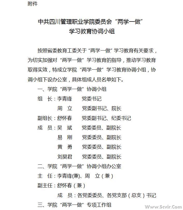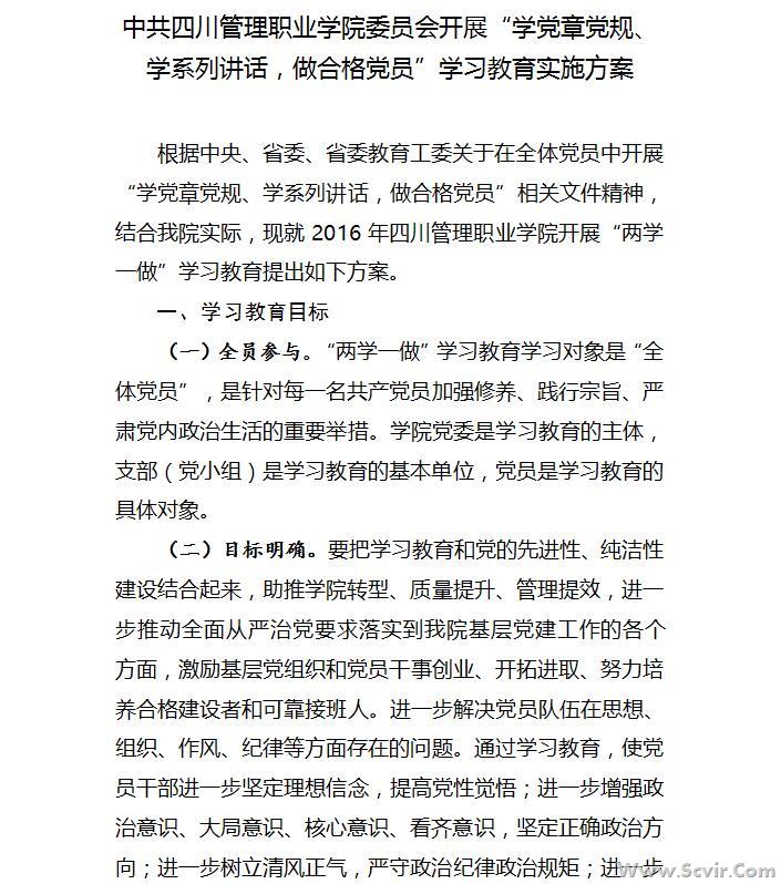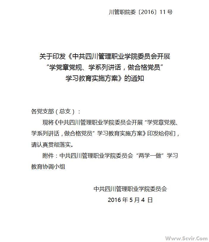 关于印发《中共四川管理职业学院委员会开展 “学党章党规、学系列讲话,做合格党员” 学习教育实施方案》的通知