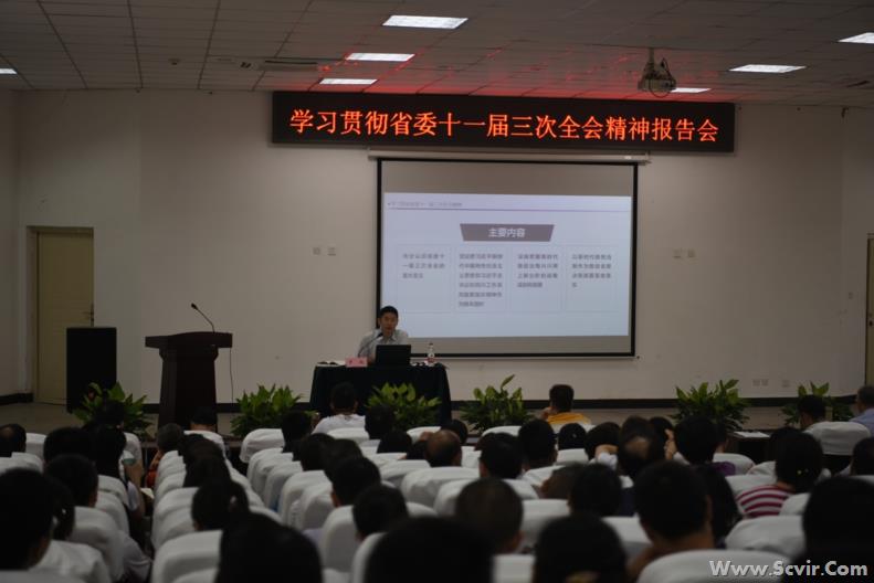 上午,学院邀请省委十一届三次全会精神宣讲团成员、西华大学经济学院院长罗航教授在成都校区学术报告厅对全体教职工做学习贯彻省委十一届三次全会精神专题辅导报告,内江校区教职工通过视频会议听取了宣讲。罗航教授介绍了当前的四川省情,归纳了习近平总书记对四川工作系列重要指示精神,讲解了省委两个《决定》的主要内涵,对全校教职工深入理解省委十一届三次全会精神起了很好的辅助作用。