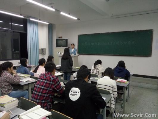 2017426日,管理系党总支组织第十三期入党积极分子培训班第五小组成员2513教室开展大学生如何践行社会主义核心价值观讨论会。辅导员马琴老师主持讨论会。