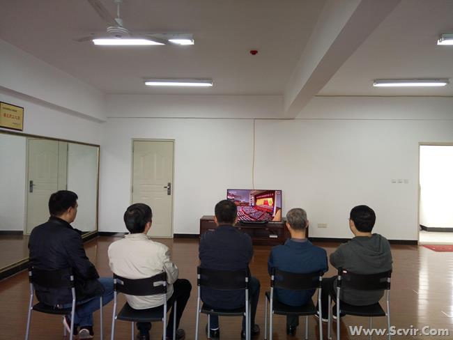 图:院领导在教工之家集中收看十九大开幕会,学习习总书记的大会报告。