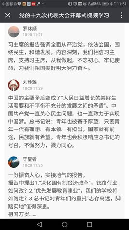 鉴于教学一线的实际情况,不便组织集中学习,系党总支决定让党员、群众通过手机、平板电脑等移动通讯工具,用“雨课堂”的方式进行自主学习。除了观看十九大相关视频资料,教师们还在“雨课堂”里发表自己的学习心得和交流对相关热点话题的看法。此外,各支部还通过党建QQ群,开展了交流讨论。通过这些创新的学习方式,既可以了解党员、群众的学习情况,还可以掌握教师们的思想动态,有助于激发学习热情,充分发挥党员干部的先锋模范作用,统一思想,奋力拼搏。教师们纷纷表示将始终贯彻落实党的教育方针,培养合格建设者和接班人,为社会主义教育事业做出更大的贡献。